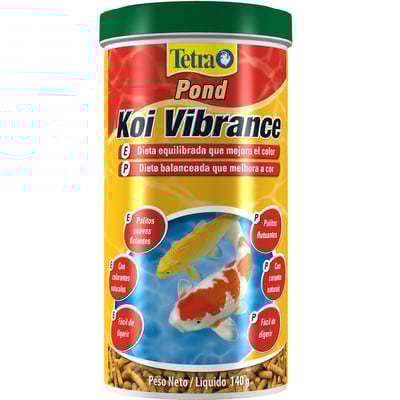 A ração Tetra Alimento Peixe Koi Vibrance Sticks - 140G é uma opção nutritiva e balanceada destinada a kinguios e carpas ornamentais. Este alimento é formulado para realçar as cores vibrantes dos peixes e promover uma vida saudável, rica em vitaminas, minerais, e componentes que fortalecem o sistema imunológico. Disponível em várias embalagens, é ideal para quem busca qualidade e eficiência na alimentação dos seus peixes ornamentais.