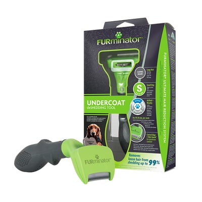 Rasqueadeira furminator verde para cães de pequeno porte e pelo longo