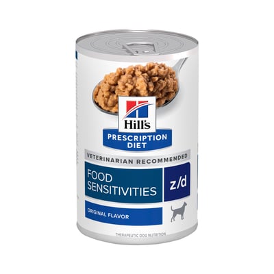 Ração hill's prescription diet lata z/d para cães adultos alergia alimentares e da pele 370 g