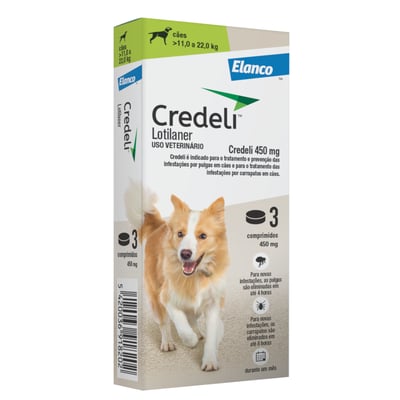 Antipulgas e carrapatos credeli 450mg para cachorros de 11kg até 22kg com 3 comprimidos