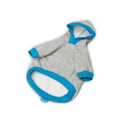 Com uma paleta de cores azul e cinza, este moletom apresenta um design liso e moderno, complementado por um capuz que adiciona um toque extra de estilo. Seu visual neutro e sofisticado combina facilmente com qualquer outra peça ou acessório de pet que você tenha em casa.