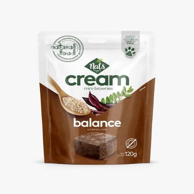 O Snack Nats Cream Brownie Balance Para Cães - 120G é um petisco inovador e irresistível que combina sabor e saúde para o seu cão. Com um formato que lembra um delicioso brownie, este snack é cuidadosamente formulado para oferecer uma experiência de sabor única, ao mesmo tempo que proporciona benefícios nutricionais.