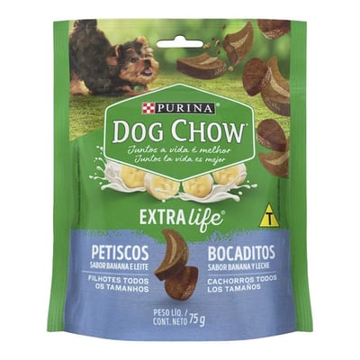 Petisco purina dog chow extra life banana e leite para cães filhotes todos os tamanhos - 75g 1un.