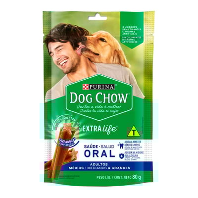 Petisco purina dog chow extra life saúde oral para cães adultos raças médias & grandes - 80g 85g