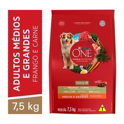 Ração Nestlé Purina One Para Cães Adultos - Raças Médias E Grandes - Sabor Frango E Carne - 7,5Kg - Compare ofertas e economize