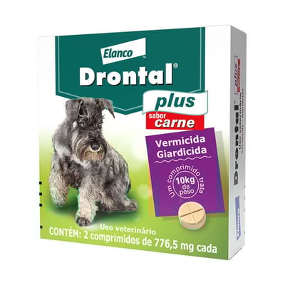 Vermífugo elanco drontal plus sabor carne 776,5mg para cães 10kg 2com.