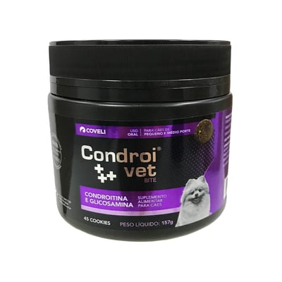 O Suplemento Condroivet Bite Coveli Para Cães - 157G é uma solução nutricional destinada a cães de pequeno e médio porte que buscam suporte adicional para a saúde articular. Desenvolvido com ingredientes de alta qualidade, este suplemento é projetado para melhorar a mobilidade e o bem-estar geral dos cães, especialmente aqueles com predisposições a problemas articulares. Embalado de forma conveniente em uma lata de 157g, o Condroivet Bite é fácil de administrar e altamente palatável, garantindo que seu amigo peludo receba o suporte nutricional necessário.