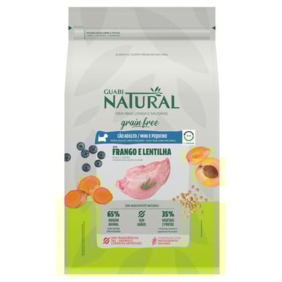 Ração guabi natural grain free cães adultos raças mini pequeno frango e lentilha