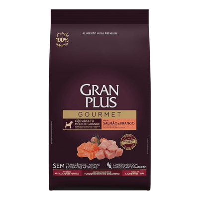 Ração granplus gourmet para cães adultos raças médias e grandes salmão e frango 10,1kg