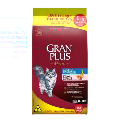 Ração Gran Plus Gatos Adultos Castrados Salmão E Arroz - 11,1Kg - Compare ofertas e economize