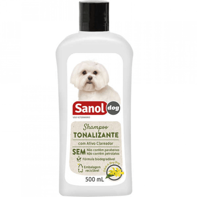O Shampoo Sanol é recomendado para cães com pelos claros, ajudando a realçar e preservar a cor natural e o brilho dos pelos.