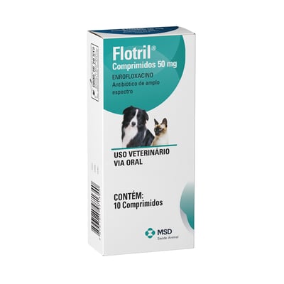 Antimicrobiano msd flotril enrofloxacino 50mg para cães e gatos - 10 comprimidos 10comp