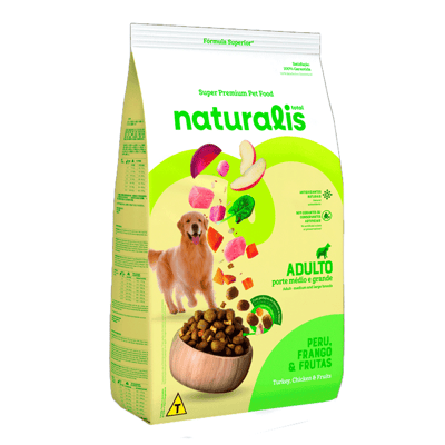 Ração naturalis para cães adultos de porte médio e grande sabor peru, frango e frutas