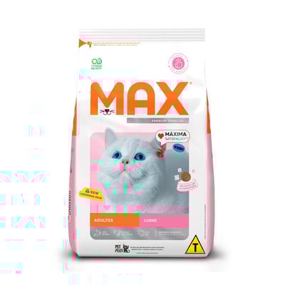 O diferencial da Ração Max é o selo #PetPlus, que garante uma combinação única de ingredientes que fortalecem a saúde geral do gato, com benefícios específicos para o trato urinário, saúde oral e saúde intestinal.