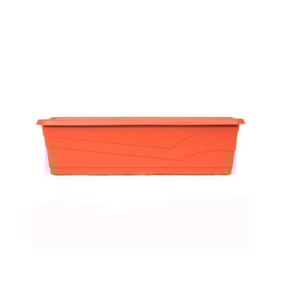 A floreira é feita de polipropileno, um material plástico resistente e durável.