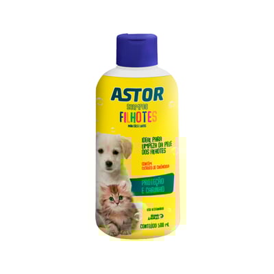 O Shampoo Astor é indicado para cachorros e gatos filhotes a partir de quatro semanas de vida, de todas as raças e tipos de pelo.