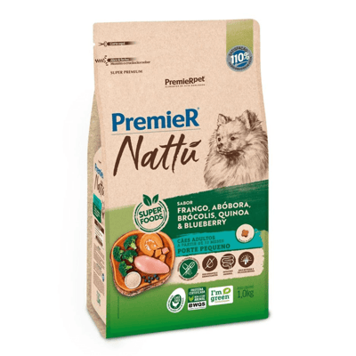 Ração premier nattu cães adultos raças pequenas sabor frango, abóbora e brócolis 1,0kg