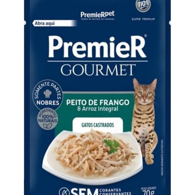 Ração Úmida Premier Gourmet Para Gatos Castrados - Frango E Arroz Integral 70G - 1 Unidade
