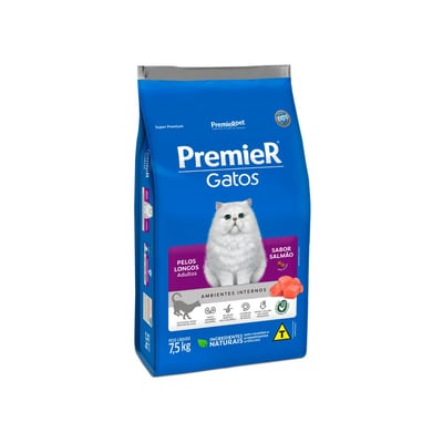 Ração premier gatos adultos pelos longos ambientes internos salmão 1,5kg