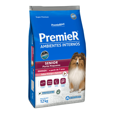 Ração seca premier ambientes internos senior frango e salmão para cães idosos raças pequenas 1kg