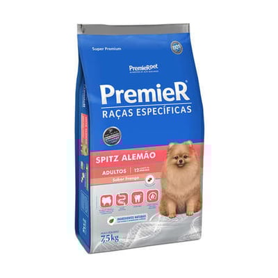 Ração premier raças específicas spitz alemão adultos sabor frango 7,5kg