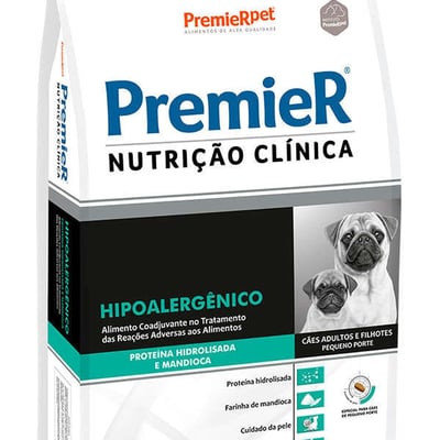Ração premier nutrição clínica hipoalergênico cães adultos porte pequeno 10,1 kg proteína hidrolisada e mandioca