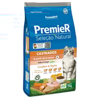 Ração premier seleção natural gatos adultos castrados frango korin 7,5kg