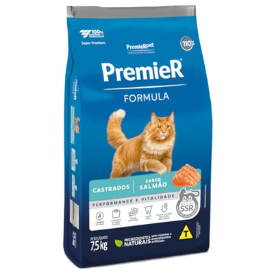 Ração premier formula performance e vitalidade para gatos adultos castrados sabor salmão