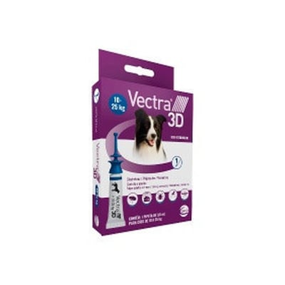 O Vectra 3D é uma solução tópica super premium, desenvolvida especificamente para cães entre 10 e 25 kg. Sua fórmula é capaz de combater pulgas em apenas 5 minutos, carrapatos em 8 horas, e mosquitos e flebótomos em apenas 1 hora após a aplicação. Com uma duração impressionante de 60 dias para pulgas e 28 dias para carrapatos, este produto é ideal para manter seu cão protegido por longos períodos.