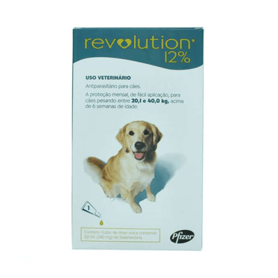 Antipulgas e carrapatos revolution 12% (240 mg) para cães de 20,1kg a 40kg com 1 pipeta