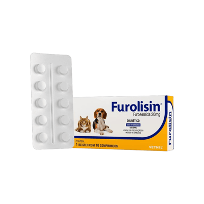 Diurético vetnil furolisin furosemida 20mg para cães e gatos 10com.
