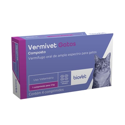 Vermífugo Vermivet Para Gatos Biovet - 4 Comprimidos