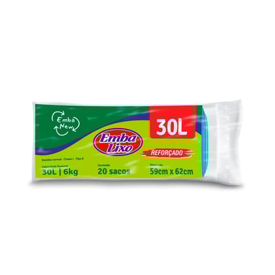 O Saco De Lixo Embalixo Azul é projetado para atender às necessidades de descarte de resíduos em ambientes domésticos e comerciais. Feito de material reciclado, ele promove a sustentabilidade ao garantir que a mesma quantidade e tipo de material posto no mercado seja reciclada pela Embalixo. Disponível em várias capacidades, ele se adapta a diferentes demandas, seja para uso em casa, no escritório ou em áreas externas.