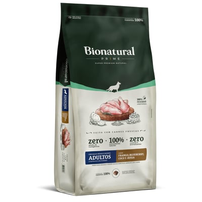 Ração bionatural prime para cães adultos de raças médias e grandes sabor frango, blueberry, coco e aveia