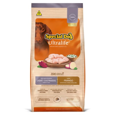 Ração special dog ultralife light cães castrados raças pequenas frango