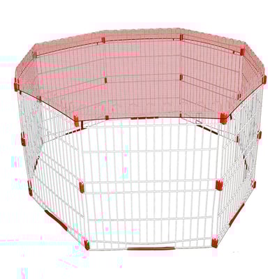 A cobertura é feita de nylon resistente, um material conhecido por sua durabilidade e resistência às intempéries. Isso garante que a cobertura possa ser usada tanto em ambientes internos quanto externos, sem comprometer sua eficiência ou aparência. Disponível em uma cor unissex, ela se integra facilmente a qualquer decoração ou estilo de cercadinho.