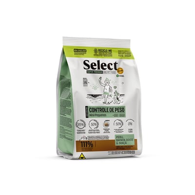Ração select by monello controle de peso para cães adultos de porte mini e pequeno sabor peru, batata doce e maçã