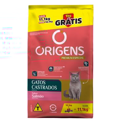 Racao Para Gatos Castrados Salmao Bonus Bag Origens 11,1Kg - Compare ofertas e economize