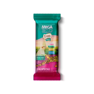 Os sticks vegetais Megazoo são uma escolha ideal para quem deseja oferecer uma alimentação de qualidade superior para sua calopsita ou outras aves ornamentais como agapornis, ring necks, roselas e maritacas. Este alimento se diferencia por ser disponibilizado em barras, uma forma prática e divertida de alimentar suas aves, estimulando seu comportamento natural de bicar e brincar.