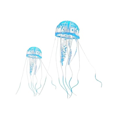 O Enfeite De Silicone Jellyfish Combo Branco E Azul Soma é um produto inovador e esteticamente agradável, projetado para trazer um toque de beleza e funcionalidade ao seu aquário. Este enfeite não apenas embeleza o ambiente aquático, mas também oferece um refúgio seguro para os peixes, enriquecendo sua experiência e promovendo um habitat mais natural e confortável.