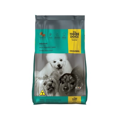 Ração three dogs original para cães adultos de raças pequenas sabor frango, carne e arroz