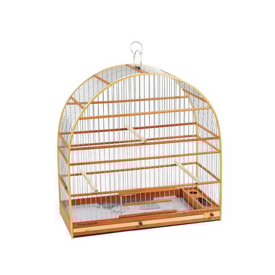 Com um formato boleado, esta gaiola proporciona um espaço amplo e confortável para os pássaros, permitindo que eles batam as asas livremente. A combinação de materiais, como o arame e a madeira, assegura a durabilidade e a resistência necessárias para manter os pássaros seguros enquanto oferecem um espaço arejado e iluminado.