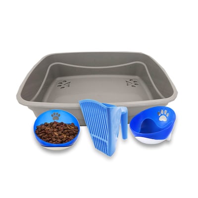 Kit Higiênico Truqys Bandeja Furba E Comedouro Azul Para Gatos - Compare ofertas e economize