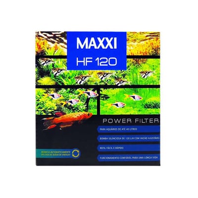 O Filtro Maxxi Power Hf-120 é indicado para aquários de até 40 litros se forem plantados, 30 litros para aquários comunitários e 24 litros para aquários com kinguios ou peixes predadores.