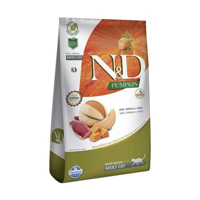 Ração farmina n\u0026d pumpkin pato, abóbora e melão para gatos adultos 1.5kg