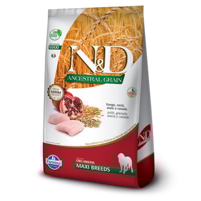 Ração seca farmina n&d ancestral grain frango, romã, aveia e cevada para cães adultos raças grandes 10,1kg