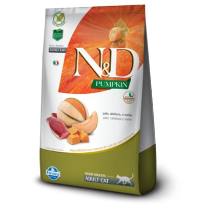 Ração farmina n\u0026d pumpkin pato, abóbora e melão para gatos adultos 7.5kg