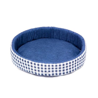 A cama é confeccionada com tecido acolchoado que não apenas adiciona uma camada extra de conforto para o seu pet, mas também assegura um toque macio e agradável. A estampa quadriculada azul oferece um visual moderno que se integra perfeitamente a qualquer decoração de ambiente. Além disso, a base em tecido impermeável garante que a cama permaneça seca e protegida contra eventuais acidentes com líquidos.