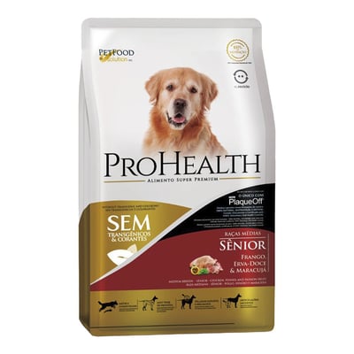 Ração seca prohealth frango, erva-doce & maracujá para cães sênior raças médias 10,1kg