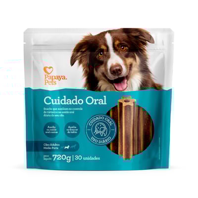 O Snack Cuidado Oral Papaya Pets é mais do que um simples petisco; é uma ferramenta essencial no cuidado diário da saúde oral dos cães. Destinado a cães adultos de raças médias, este produto foi desenvolvido para atender às necessidades específicas de mastigação e higiene bucal canina.